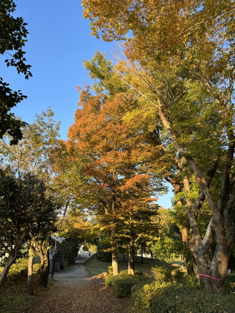 自宅に戻る途中で家内と近所のスーパーマーケットで合流し、夕食の買い物をしようとしたところ、「健康のために散歩に付き合って」との申し出が…。いやもう、こっちは目一杯散歩したけれど、とは思ったものの、せっかくなので付き合うことに。つくば市内も木々も随分と色づいてきたようです。